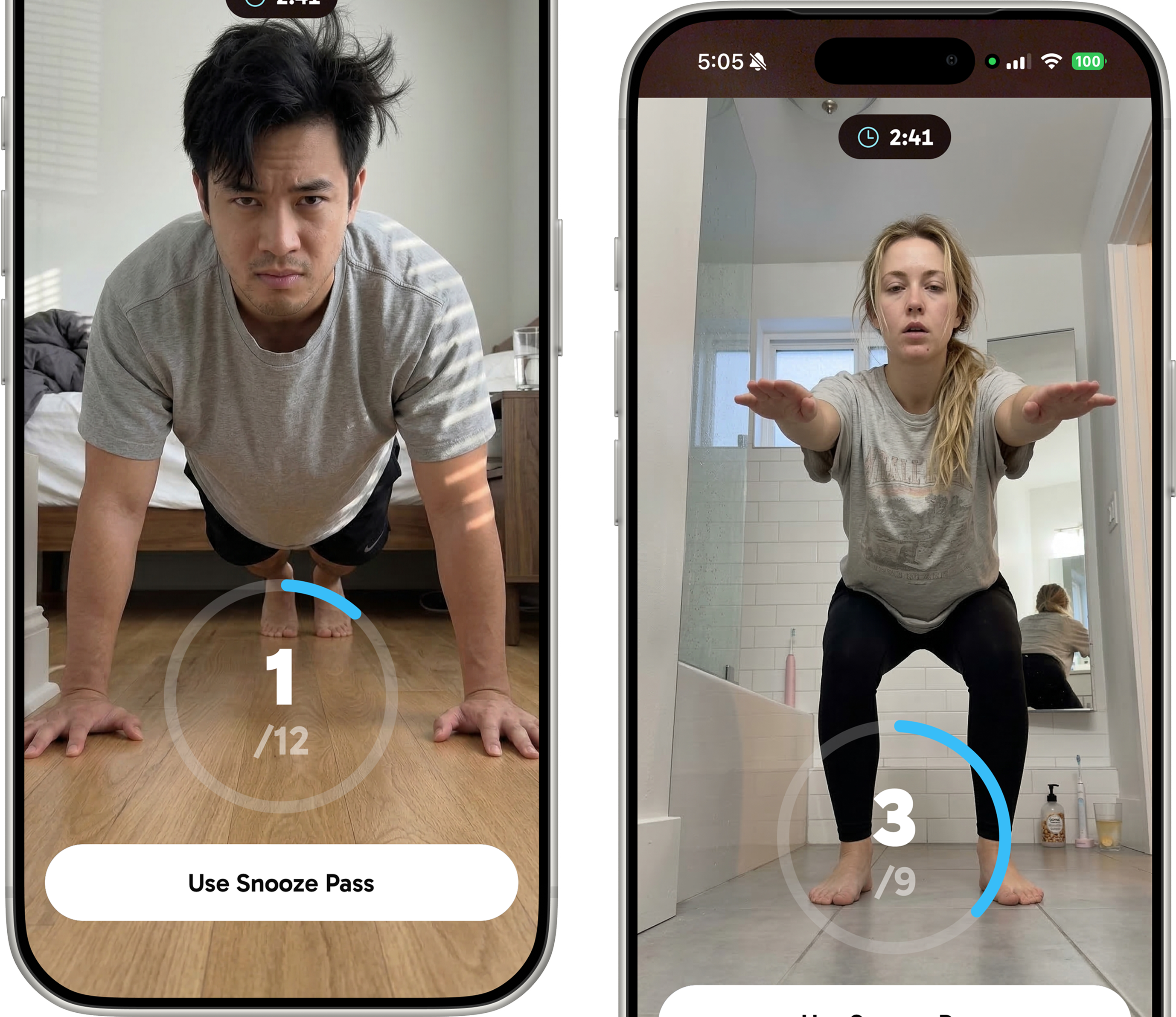 We made it so that you have to do push ups or squats to turn off the alarm. No more snoozing.